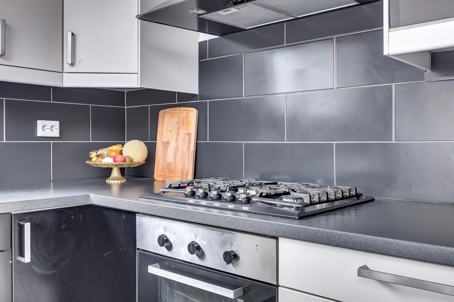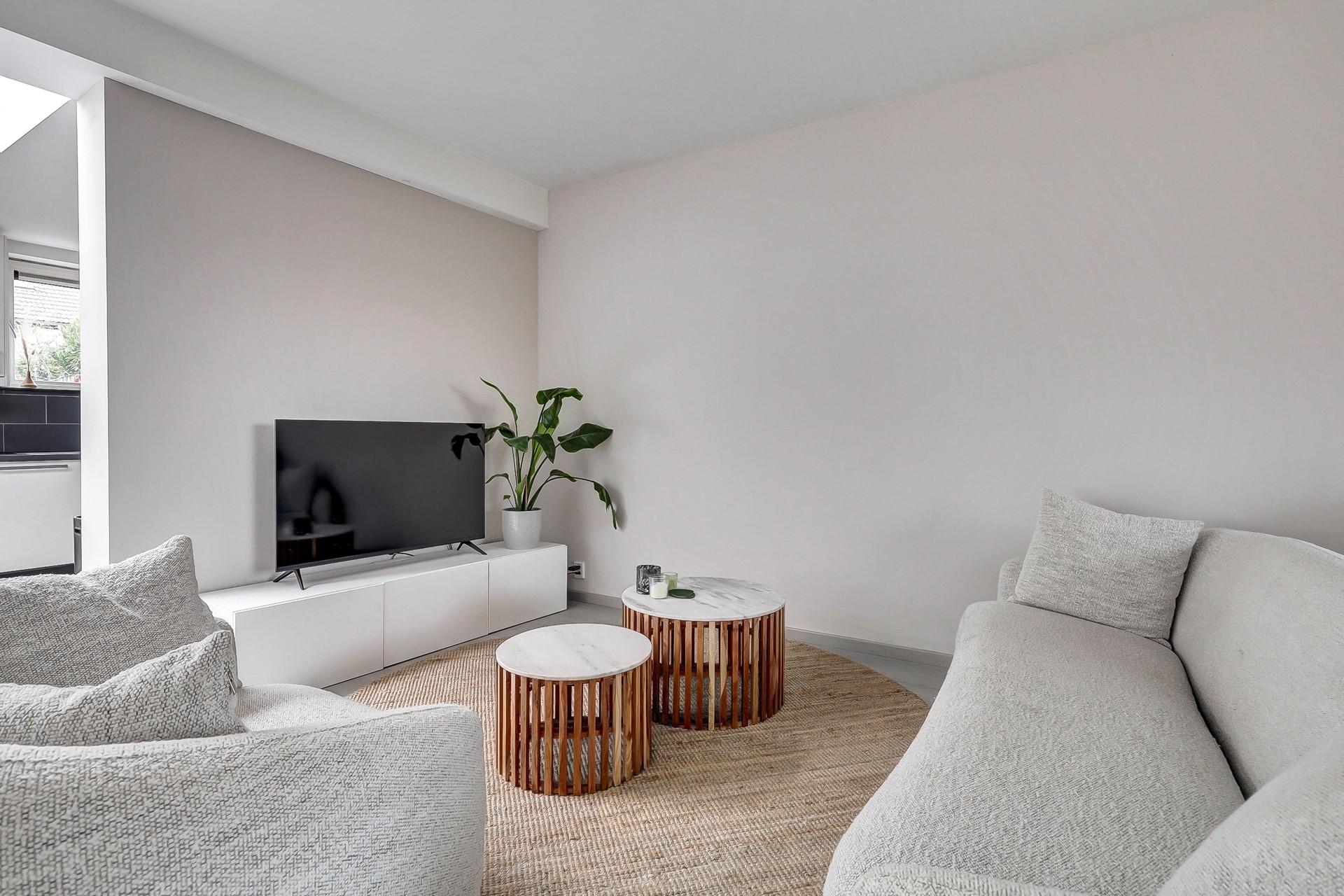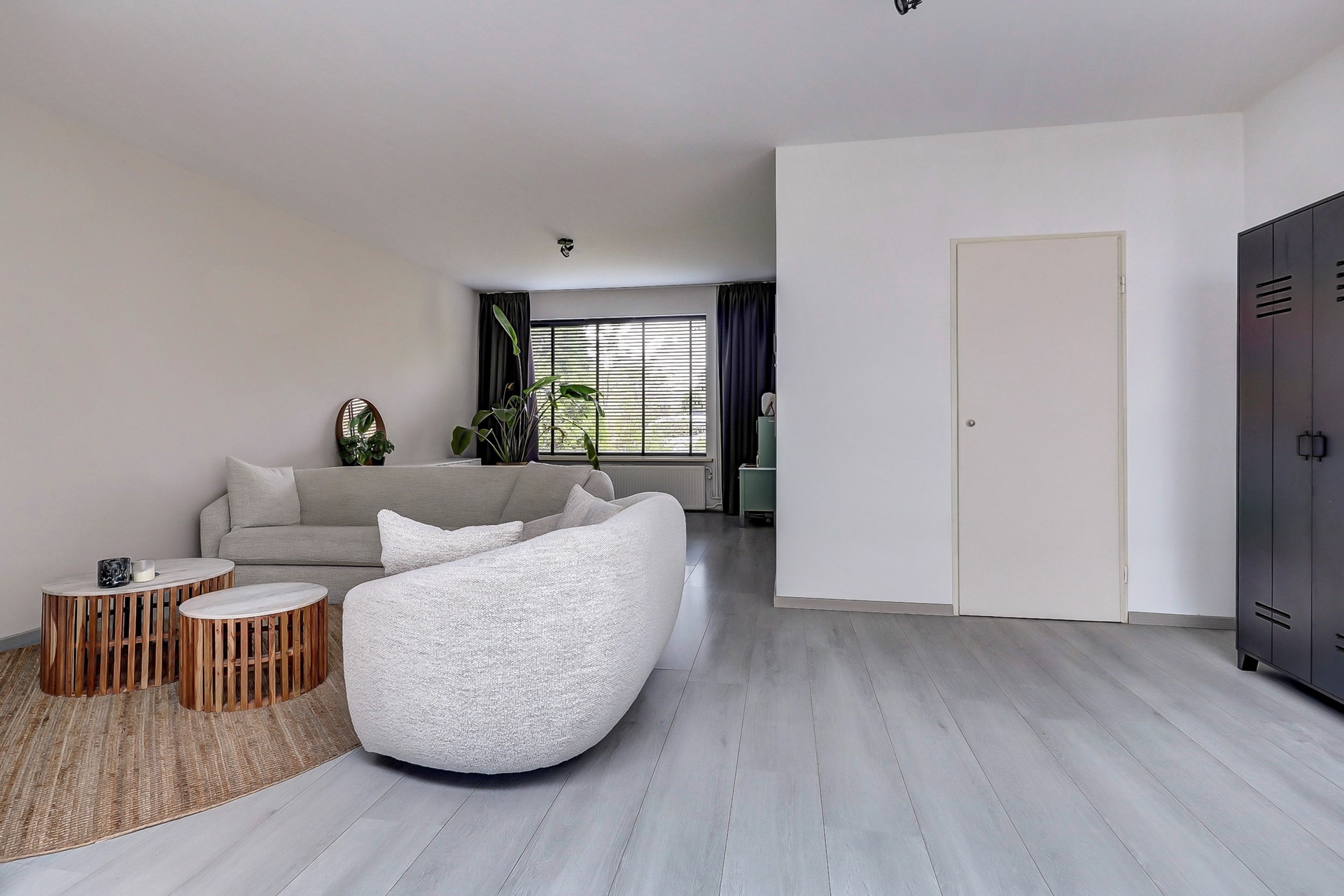 Via de groene voortuin bereik je de entree. De hal geeft toegang tot het toilet, de trapopgang en de woonkamer. De lichte en eigentijds afgewerkte woonkamer biedt een prettig gevoel van ruimte dankzij de open indeling en grote raampartijen. De moderne vloer en strakke wandafwerking zorgen voor een frisse, rustige basis. Aan de voorzijde bevindt zich een sfeervolle zithoek met voldoende plek voor een royale bank. Aan de achterzijde is de woning uitgebouwd, waardoor er een riante leefruimte is ontstaan. De grote lichtstraat zorgt voor een prachtige lichtinval en maakt deze ruimte ideaal als eetkamer. De openslaande deuren naar de tuin creëren een fijne verbinding tussen binnen en buiten. De open keuken ligt aan de tuinzijde en is uitgevoerd in een modern zwart-wit contrast. De keuken beschikt over diverse inbouwapparatuur, waaronder een oven, magnetron, kookplaat, afzuigkap, koelkast en vaatwasser. De opstelling biedt veel werk- en bergruimte.