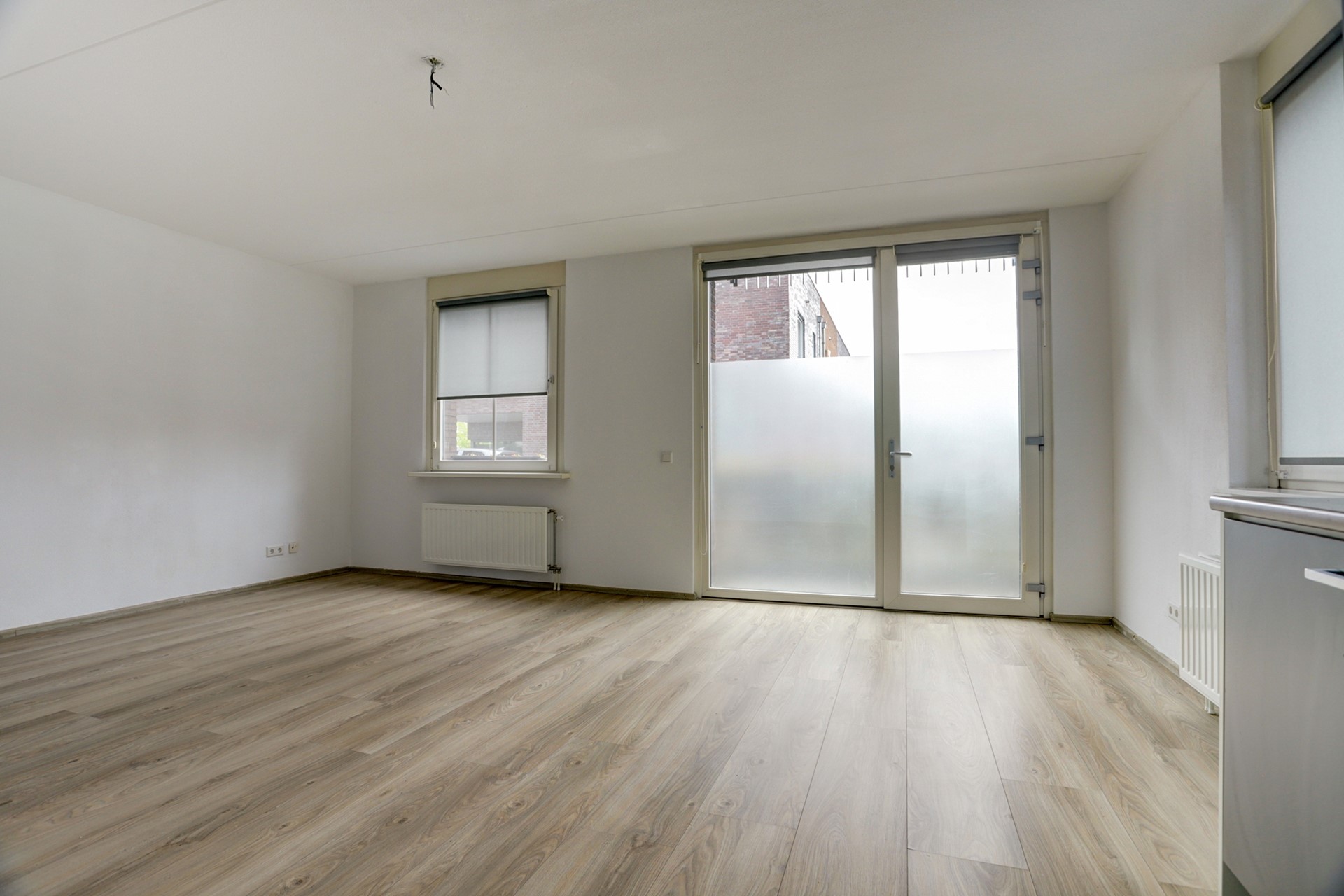 Ruime, rechthoekige living met een doorlopende laminaatvloer, spachtelputz wanden en drie grote ramen voor veel lichtinval. Via een loopdeur heb je toegang tot de voortuin. De woonkamer en keuken samen biedt met ca 30m2 volop mogelijkheden voor een comfortabele zit- en eethoek.