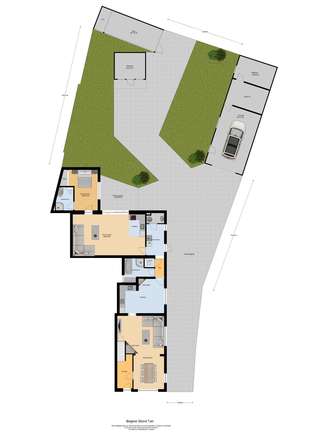 plek om buiten te leven. De oprit aan de zijkant van het perceel biedt ruimte aan meerdere auto’s en leidt