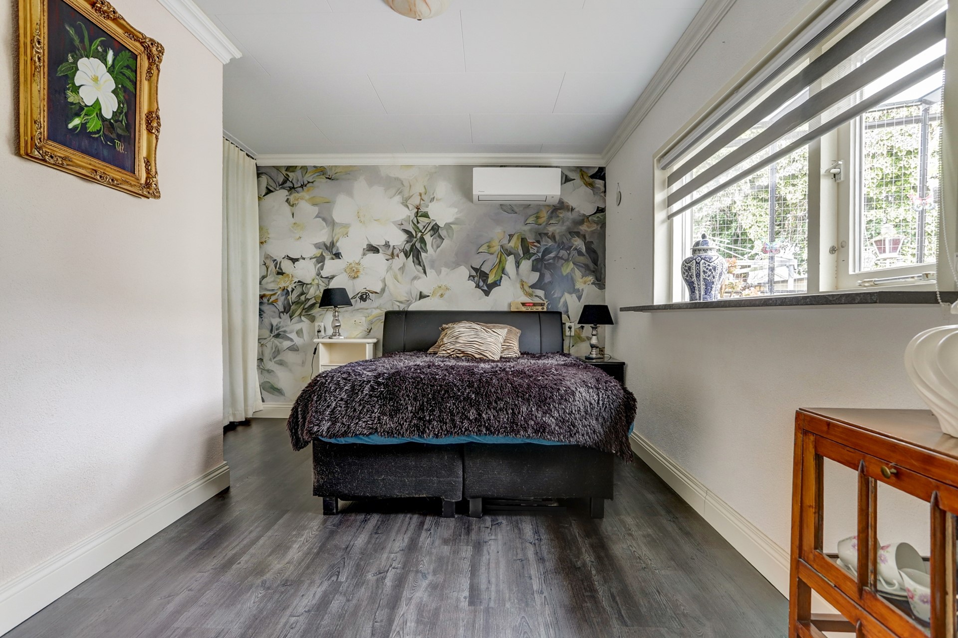 Op de begane grond bevindt zich tevens een ruime slaapkamer, waardoor dit deel van de woning volledig
