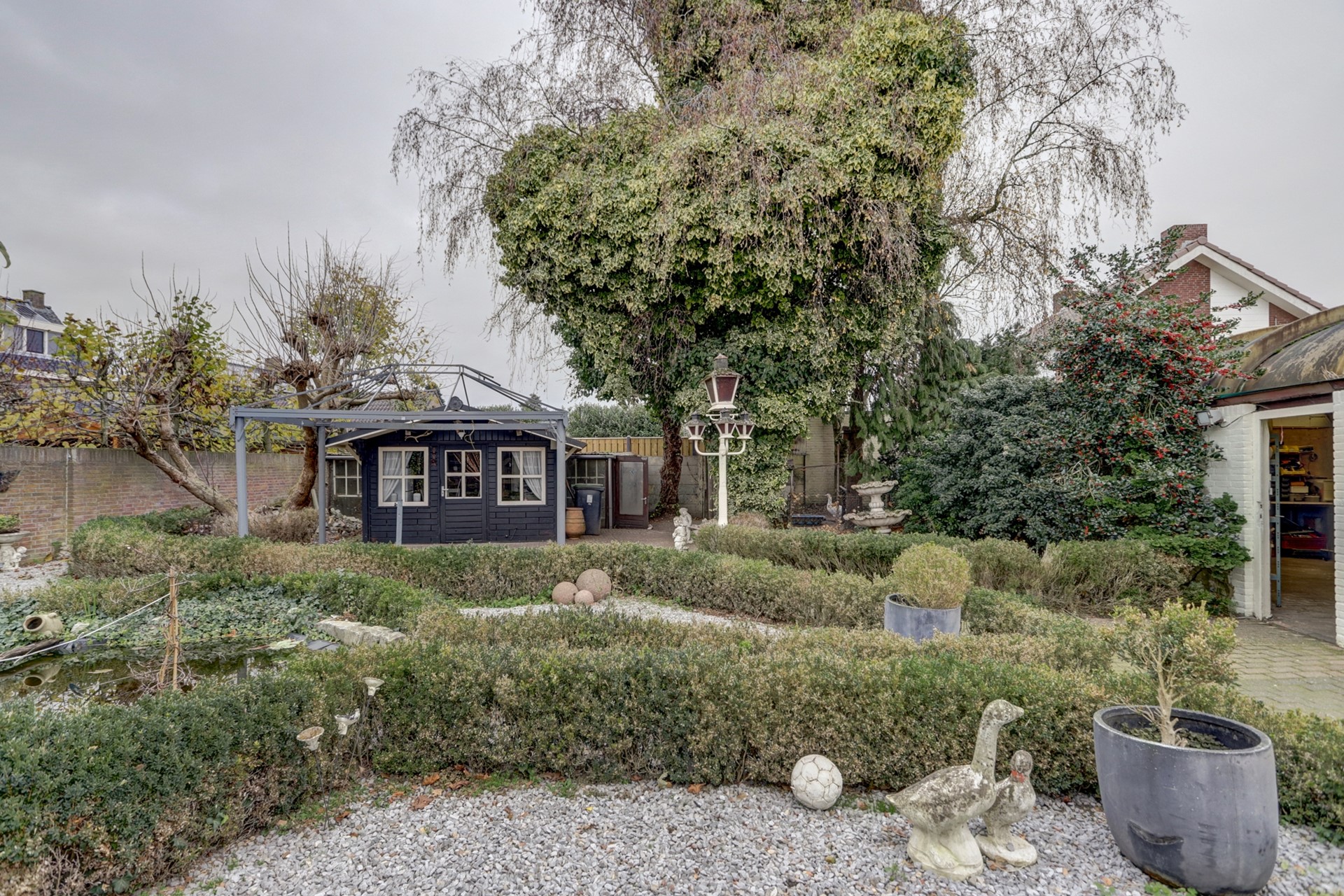 naar een ruime garage/berging achterin de tuin.