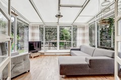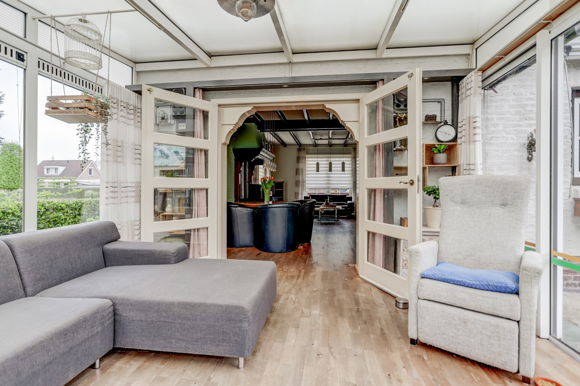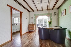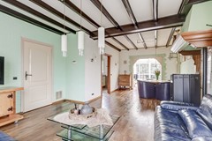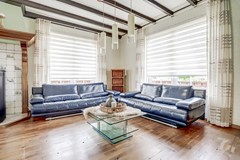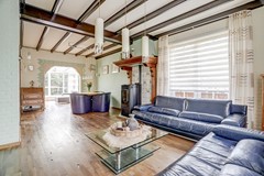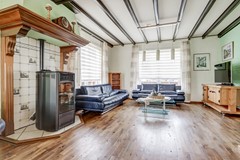 Vanuit de hal kun je rechtstreeks naar de knusse woonkamer. De woonkamer van ca. 30m2 is voorzien van een houten vloer, geverfde wanden en een balken plafond. Verder heeft de woonkamer een pellet kachel en openslaande deuren naar de serre. De ramen zijn voorzien kunststofkozijnen met HR glas. Vanuit de woonkamer loop je zo de serre in waarin het natuurlijk al vanaf vroeg in het voorjaar tot laat in het najaar heerlijk vertoeven is met een prachtig zicht op je eigen achtertuin De serre is van aluminium delen met dubbel glas en een schuifdeur aan de voorzijde en aan de zijkant en kunststof dakplaten waarvan een gedeelte open kan. De serre van ca 15m2 is ook voorzien van elektrische screens aan de bovenzijde en van dezelfde houten vloer als in de woonkamer dus de serre is echt een verlengstuk van de woonkamer