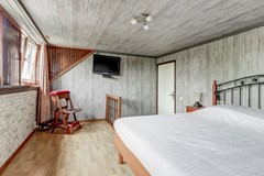 Slaapkamer 1: Deze slaapkamer van ca 15,5m2 is gelegen aan de voorzijde van de woning en heeft een verhoogde vloer, de vloer is voorzien van laminaat en heeft behangen wanden en plafond. Verder is deze kamer voorzien van een dakkapel met kunststof kozijnen en HR glas.