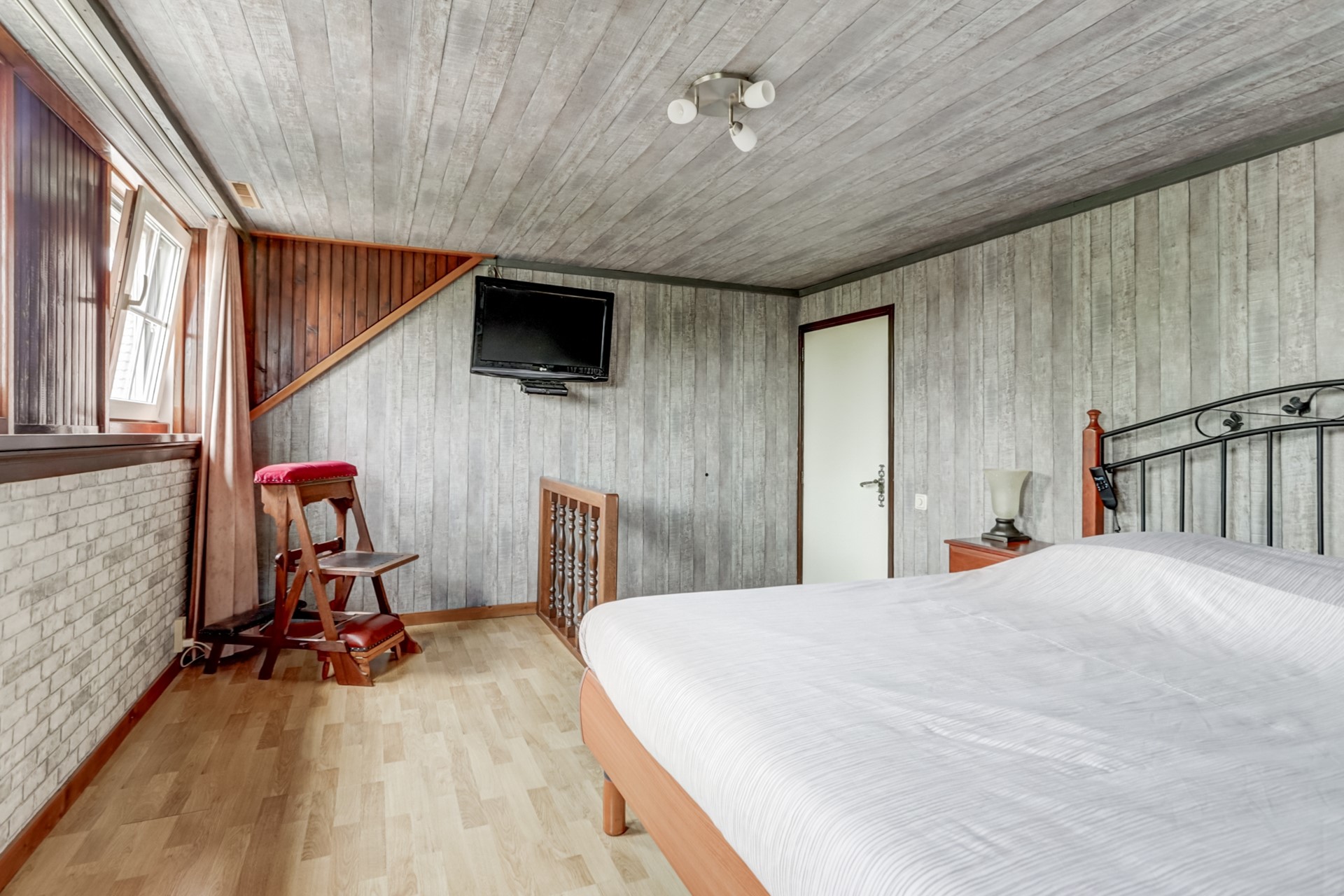 Slapkamer 2: Deze slaapkamer van ca. 13m2 vloeroppervlakte is aan de achterzijde gelegen en is voorzien van een laminaatvloer, behangen wanden en een gestukt en geverfd plafond. Deze kamer heeft een houten raamkozijn met enkel glas en een voorzetraam.