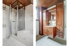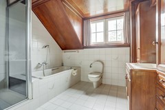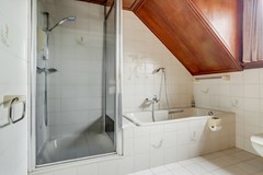Badkamer: De badkamer van ca. 8,4m2 vloeroppervlakte is aan de achterzijde van de woning gelegen en heeft een douchecabine, ligbad met handdouche, staand closet en een wastafel met wastafelmeubel. Verder heeft de badkamer een afzuiging op het lichtnet, een elektrische straalkachel, is geheel betegeld en heeft een kunststof dakkapel met HR glas.