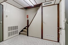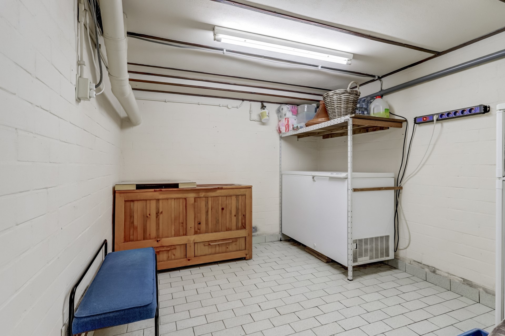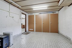Als je met de auto de oprit op draait dan kun je naar beneden rijden en via de openslaande garagedeuren rij je dan zo de onder de woning gelegen garage binnen. De garage is in het midden onder de woning gelegen en aan de rechter en linker zijde zijn diverse bergruimtes die je voor allerlei doeleinden kunt gebruiken. De grootste, aan de rechterzijde, was nu in gebruik als werkplaats maar daar zou je natuurlijk ook bijv. een kantoor of speelkamer voor de kids of een echte mancave van kunnen maken. Aan de linkerzijde van het souterrain is de trapopgang naar boven, ook een bergruimte, met nu plaats voor een vrieskist en extra koelvriescombi, en de ruimte met de technische installatie (elektrische boiler en hete lucht verwarmingsinstallatie) In de garage vind je bij de openslaande deuren de meterkast die voorzien is van 9 groepen.