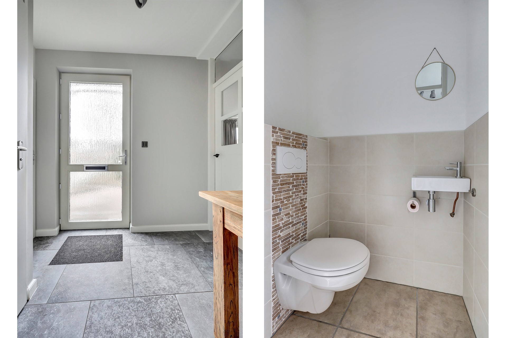 De hal is netjes afgewerkt met strak gestukte wanden en plafonds. De meterkast is voorzien van 8 groepen en 2 aardlekschakelaars. Het toilet heeft een tegelvloer en tot halverwege betegelde wanden en de rest van de wanden is voorzien van spuitwerk net als het plafond. Het toilet is voorzien van een hangend closet en een fonteintje.