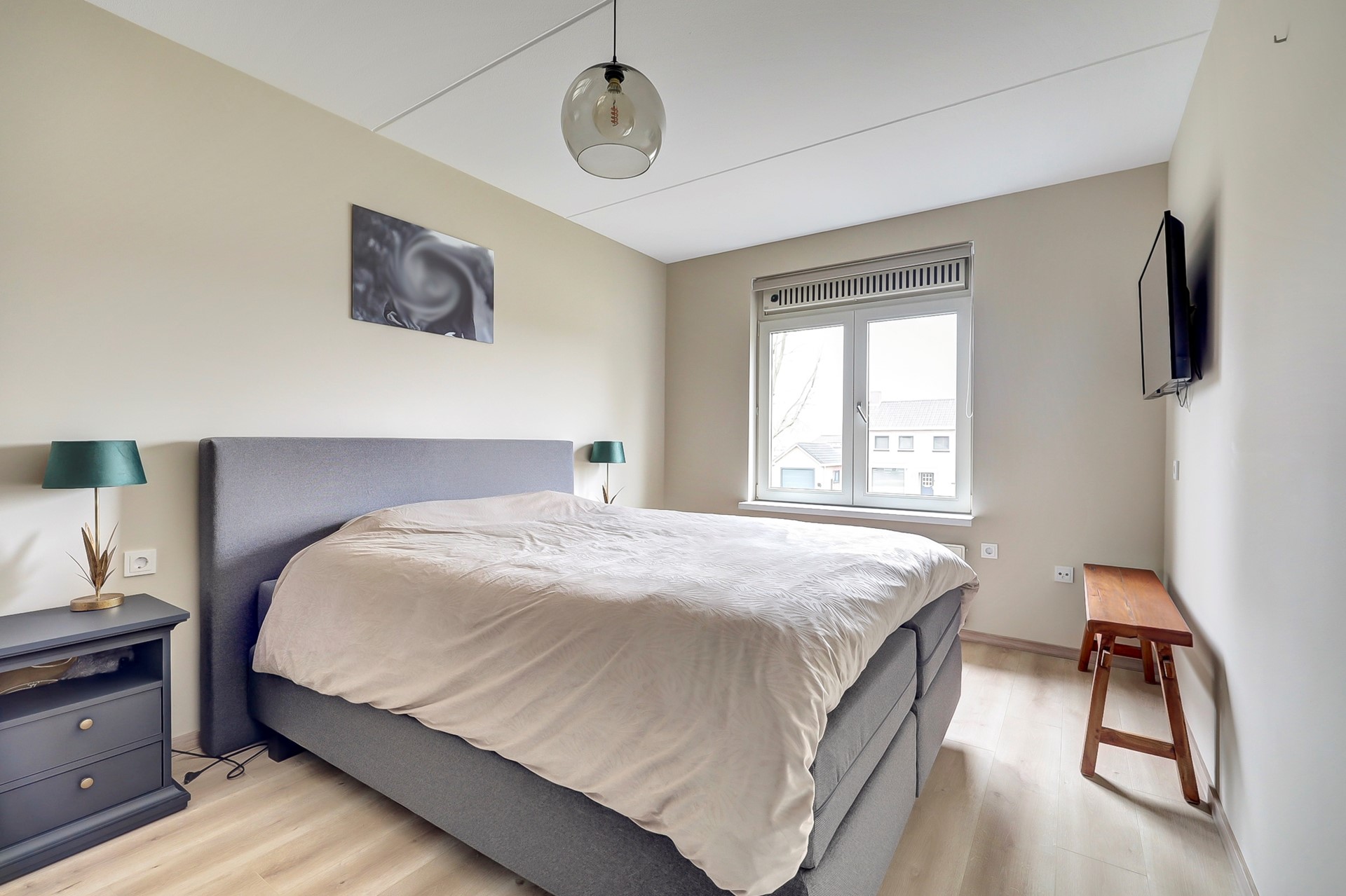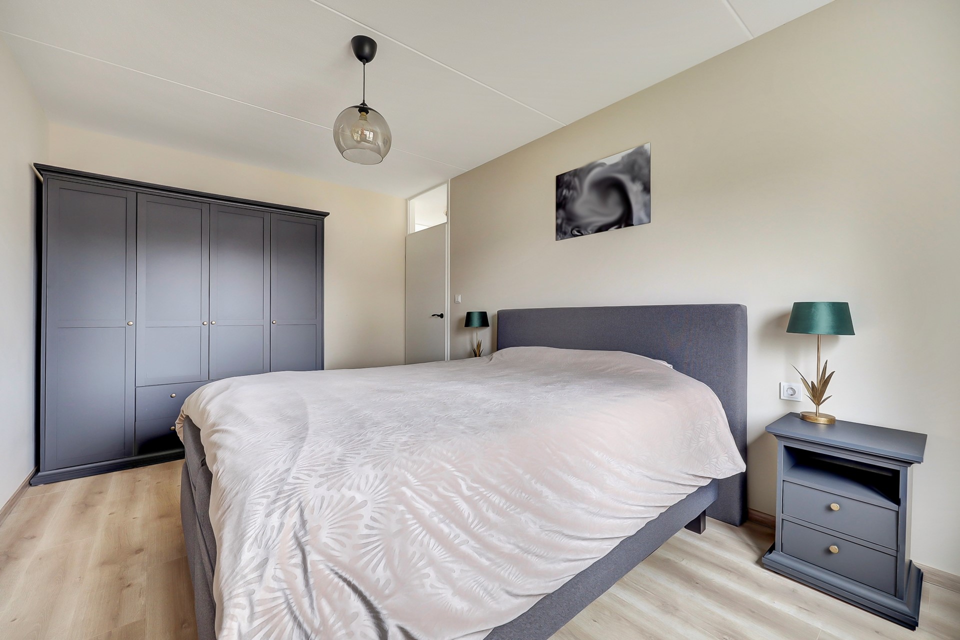 Slaapkamer 1: Deze slaapkamer van ca. 14m2 is aan de voorzijde van de woning gelegen en is voorzien van een nette laminaatvloer, strak gestukte wanden, een gespoten plafond, kunststof kozijnen met dubbel glas en ventilatierooster en een radiator.